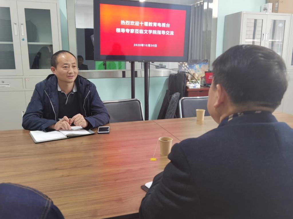 下午2点30分,十堰教育电视台台长助理马从兵到williamhill中文官网交流指导。经理郝文华教授,新闻传播教研室主任戴文雄老师,广播电视编导专业教师杨思宇和史鑫涛与会。
