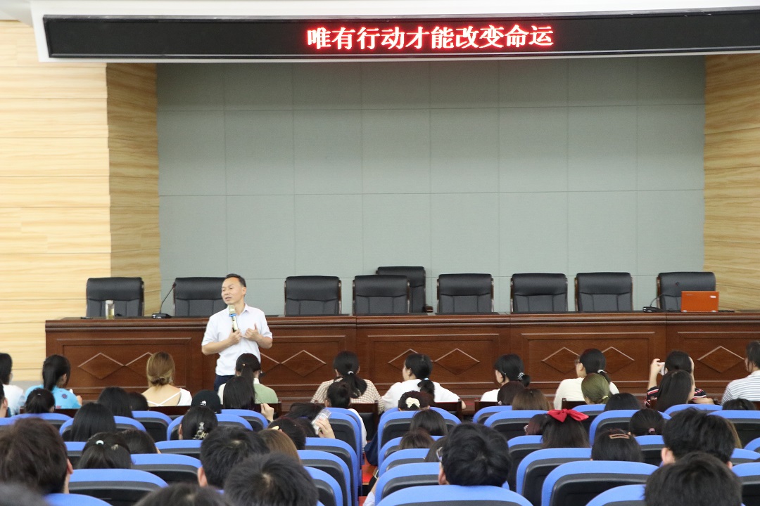 首先,周明华教授用一段鼓舞人心的视频拉开序幕。周教授以williamhill中文官网的校训为出发点,结合自己上大学时的人生经历,引出了本次讲座的主题——唯有行动才能改变命运,以此来激励大一新生和准备考研的大二大三员工,建议他们打好基础,做足功课。
