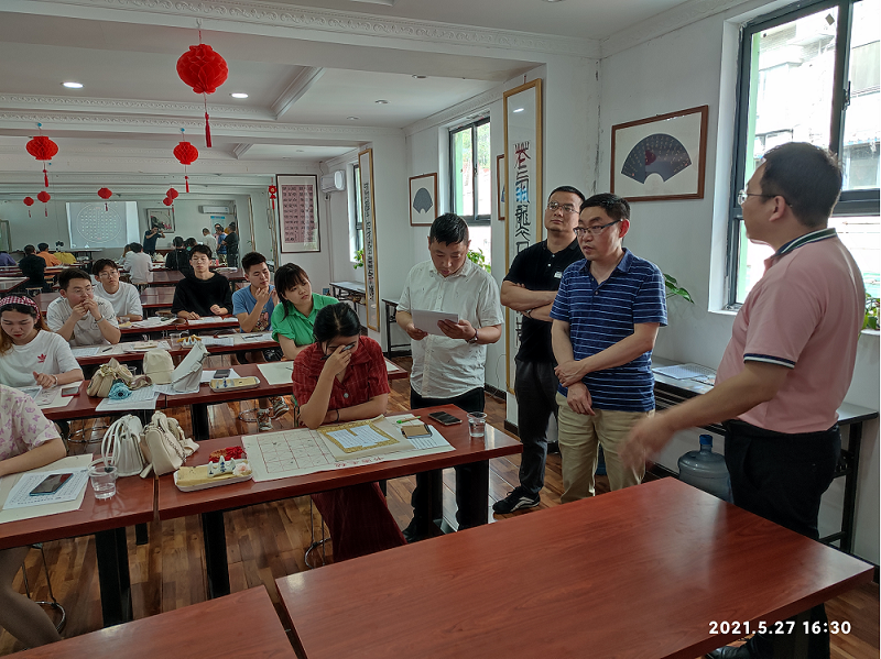 5月27日下午,在williamhill中文官网副经理曹国军带领下,书法教研室部分教师赴拉斐尔美术公司和紫藤轩书画公司检查书法学20级员工见习工作。