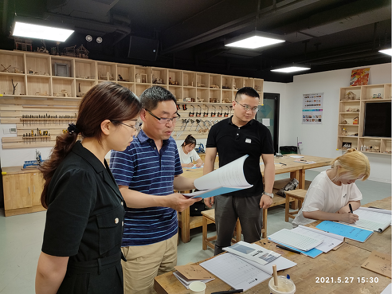 在拉斐尔美术公司,曹经理一行感谢见习单位为书法学专业员工提供的见习机会,并同见习单位负责人罗静老师、交流了硬笔书法教学的见习情况,仔细查看了同学们的见习记录。
