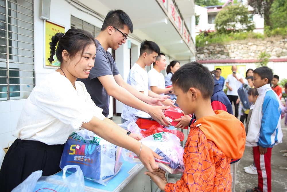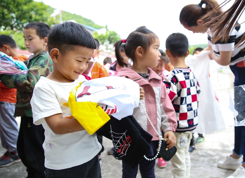 “谢谢哥哥姐姐们!”“你们瞧!我的书包多好看!”“我终于有一套公主裙了!”5月26日早晨,郧阳区青曲镇洪门完全小学的教学楼前广场上洋溢着36位孩子的欢声笑语,因为他们收到了自己渴求已久的礼物。