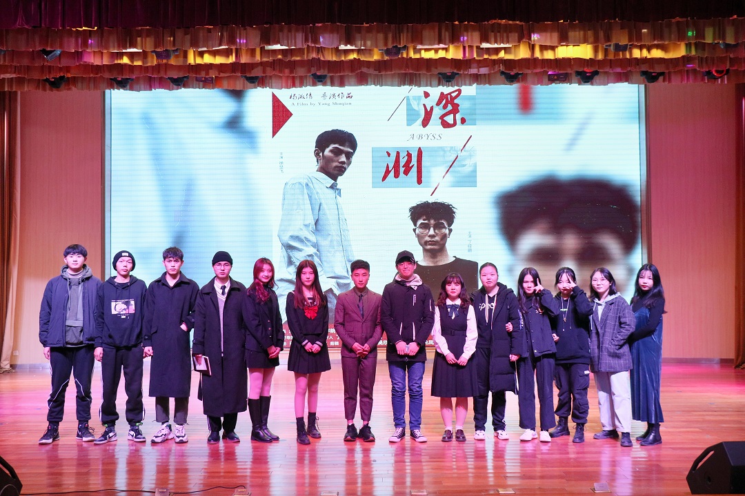 接着放映的短片是《深渊》。此片聚焦校园霸凌和校园贷两个时下与老员工紧密相关的话题,讲述了因家境一般而自卑的老员工刘禾,为了获得他人的关注,在虚荣心的裹挟和欲望的吞噬下,一步步走向犯罪深渊的悲剧。这是一部反映现实主义的短片,揭示了看似风平浪静的大公司园中存在的暗流涌动的诱惑与陷阱。钟真老师对此片给与高度赞赏,他从剧本选材、故事节奏、服化道处理、后期剪辑等角度做了深刻点评。