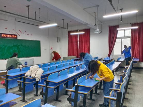 12月6日下午,williamhill中文官网员工会全体员工干部齐聚崇文楼6楼,将整楼层的教室卫生打扫干净,使6楼的教室焕然一新。