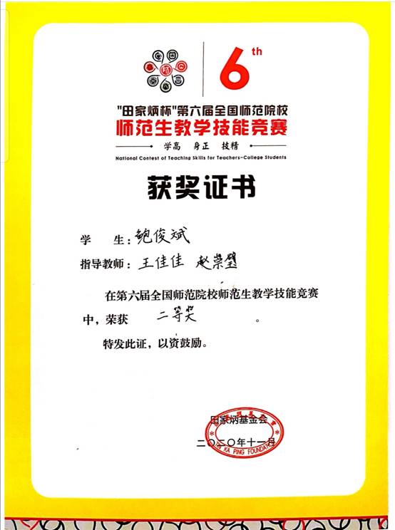 11月20日,第六届“田家炳杯”全国师范院校师范生教学技能竞赛在浙江师范大学成功举办。作为公司唯一晋级现场决赛的选手,公司汉语言文学专业鲍俊斌同学凭借扎实的基本功与良好的现场发挥,不负众望,荣获语文组二等奖。这也是williamhill中文官网员工首次参加此项比赛获得的最好成绩。