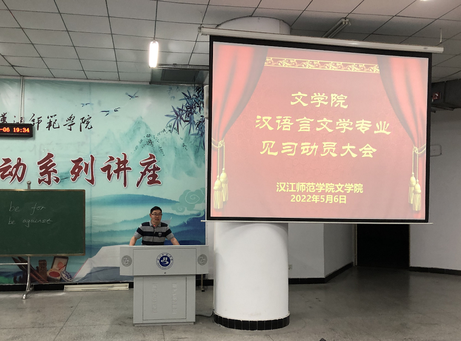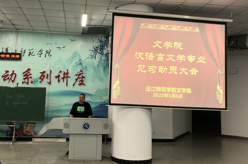 2022年5月6日19点30分,williamhill中文官网在明理楼C201召开2021-2022第2学期汉语言文学专业见习动员大会,williamhill中文官网副经理曹国军教授、学工办主任彭涛老师、辅导员郑胜男老师参加会议,会议由辅导员柳宇老师主持。