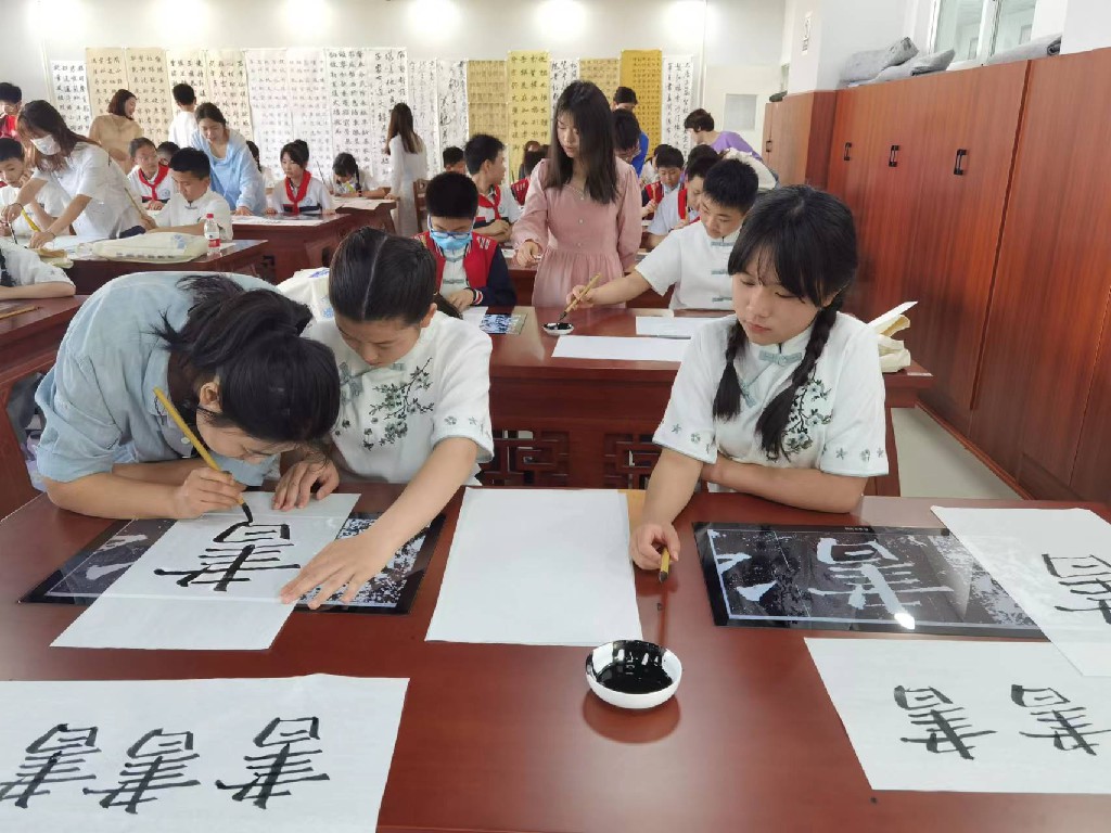 4月22日上午10点,十堰市人民小学30余名员工在郝良莉、黄义伟等老师的带领下,参观公司数字书法实验室,体验现代科技与传统艺术结合的魅力,感受书法文化之美。