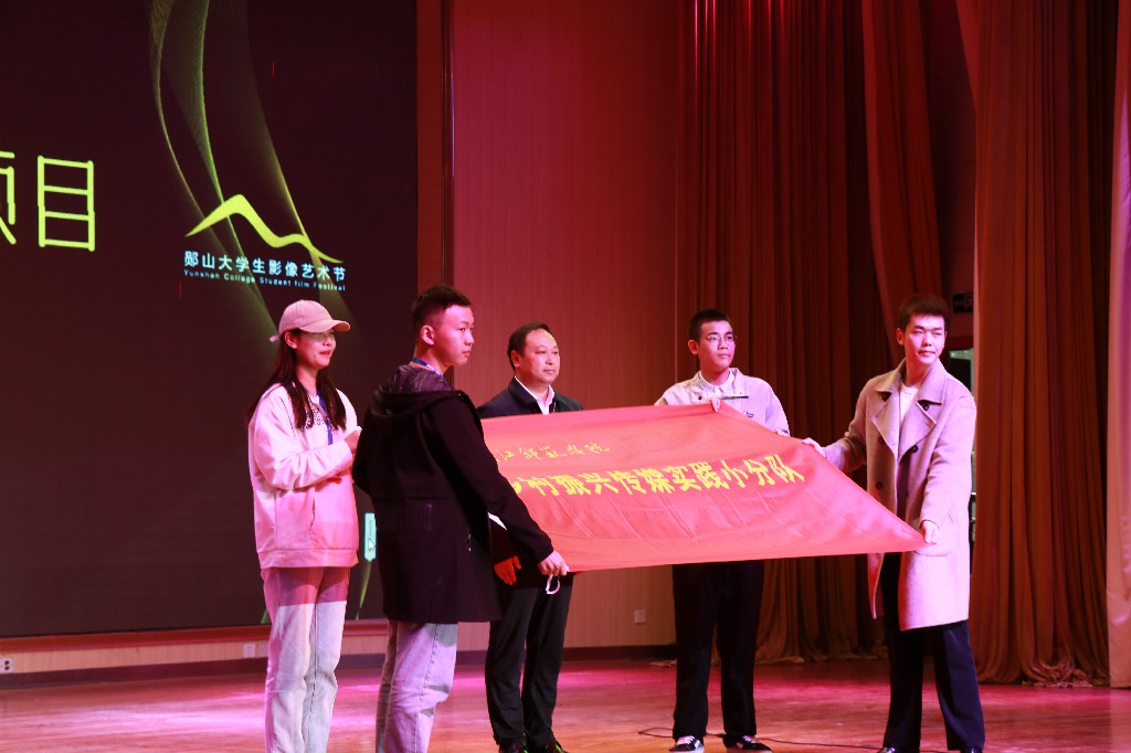 本届影像艺术节在乡村振兴的大背景下展开,为更好发挥公司资源优势,服务鄂西北地区经济社会发展,十堰市乡村振兴局主任王峰为公司广播电视编导和网络与新媒体专业授旗,启动了“十堰百村”传媒实践项目。