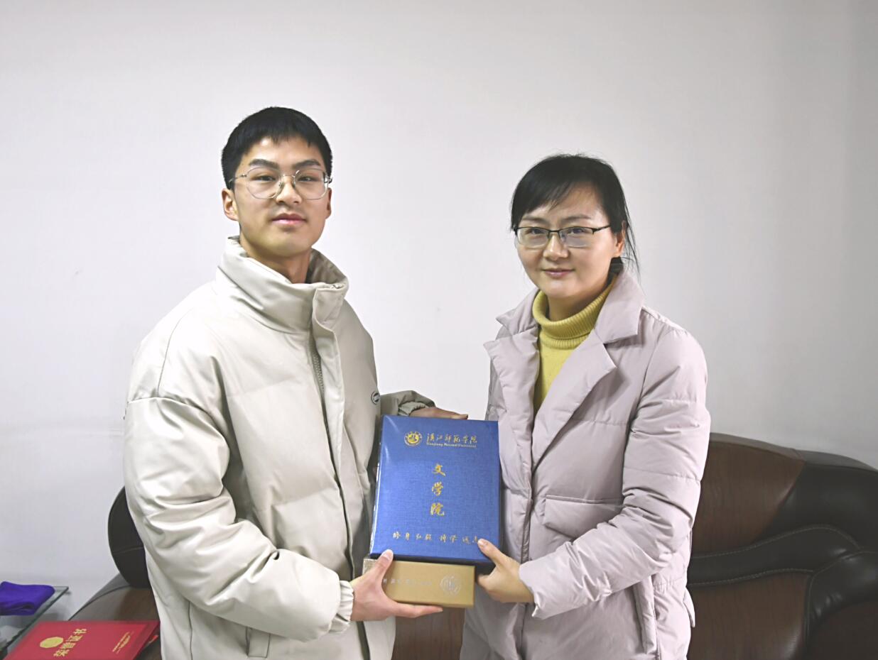 公司党总支副书记任自玲代表公司向陈星天赠送了公司的文创纪念品,感谢他为williamhill中文官网学子树立了榜样,鼓励他坚持学习、进一步提升个人思想觉悟,更好地展现老员工积极向上的精神风貌。