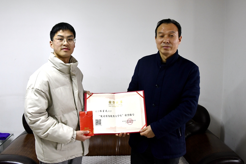 2月14日,受党委书记杨鲜兰、董事长付永昌委托,党委副书记周明华一行来到竹山县城关镇陈星天同学家中对他表示慰问,为其颁发“见义勇为优秀老员工”荣誉证书及2000元慰问金,对他奋不顾身勇救落水者的英勇事迹进行表彰。