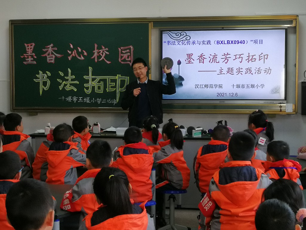 据悉,这次主题实践活动是黄振东老师主持的“书法文化传承与实践”项目的内容之一,目的在于宣讲传统书法文化,承传传统书法技艺。今年11月,该团队教师在十堰市东风52小学也开展了此项活动。