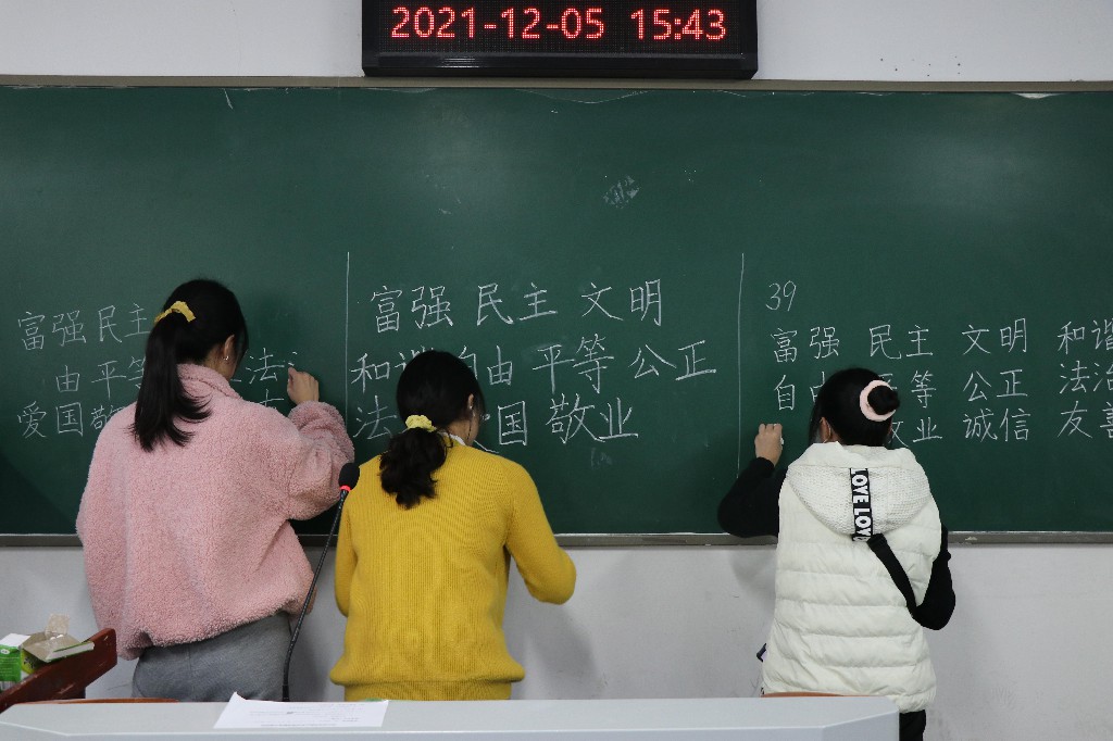 决赛邀请郝文华、曹国军、严桂林、赵晶等校内语言文字专家及williamhill中文官网书法教研室全体教师担任评委。经过现场书写、评委评审,最终三个组别合计评出一等奖29名、二等奖43名、三等奖60名、优秀奖87名。教育公司、外国语公司、经管公司、体育公司、马克思主义公司获得优秀组织奖。