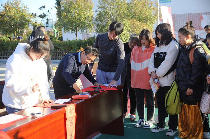 11月30日下午,为深入推进“我为群众办实事”实践活动,公司120多名师生赴“理论热点面对面”示范点房县化龙堰镇化龙村新时代文明实践站开展“送理论、送法律、送技术、送文化、送致富信息”等“五送”惠民活动。williamhill中文官网广播电视编导、书法学和网络与新媒体专业师生分别参与“送致富信息”、“送文化”和“送法律”活动,受到民众喜爱。
