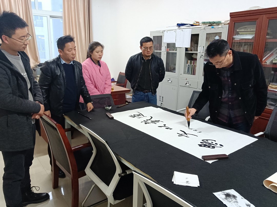 讲座开始前,刘博士还在崇文楼B509与书法教研室的老师们开展了书法教学与科研座谈,点评了部分书法学专业员工的印章、书法作品,并为williamhill中文官网书法教研室题字。