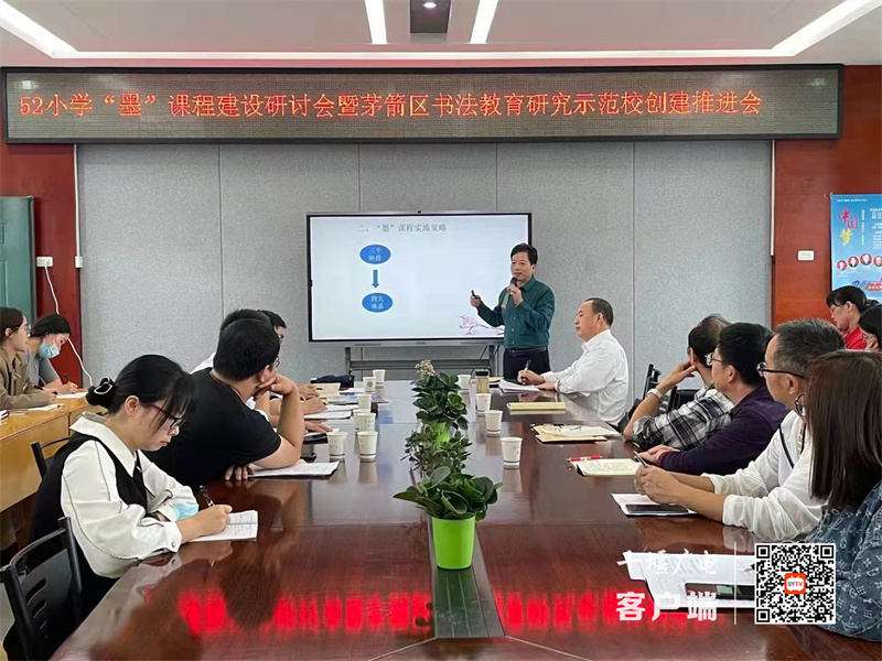 十堰广电讯(全媒体记者 董璀 通讯员 罗卫杰)为进一步展示书法教育成果,凝练书法教育理念,推进书法教育向纵深发展,发挥书法教育辐射作用,9月28日下午,东风52小学举行“墨”课程建设研讨会暨茅箭区书法教育研究示范校推进会,采用“线下教学、线上直播”的形式,茅箭区所有区属公司老师进行线上观摩。