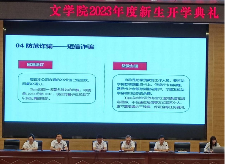 新生辅导员柳宇从交通安全、防溺水防汛安全、人身和财产安全、防范电信诈骗、国家安全、网络安全、消防安全七个方面为新生作了全面细致的安全教育。