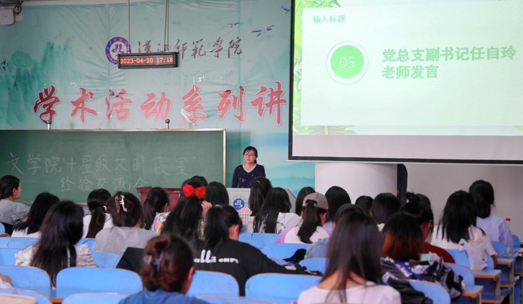 2023年4月20日下午,williamhill中文官网“十星级文明宿舍”经验交流大会在明理楼C201举行,党总支副书记任自玲老师、学工办主任彭涛老师、williamhill中文官网全体辅导员老师、williamhill中文官网20级、21级、22级全体寝室长及员工干部参加此次经验交流。