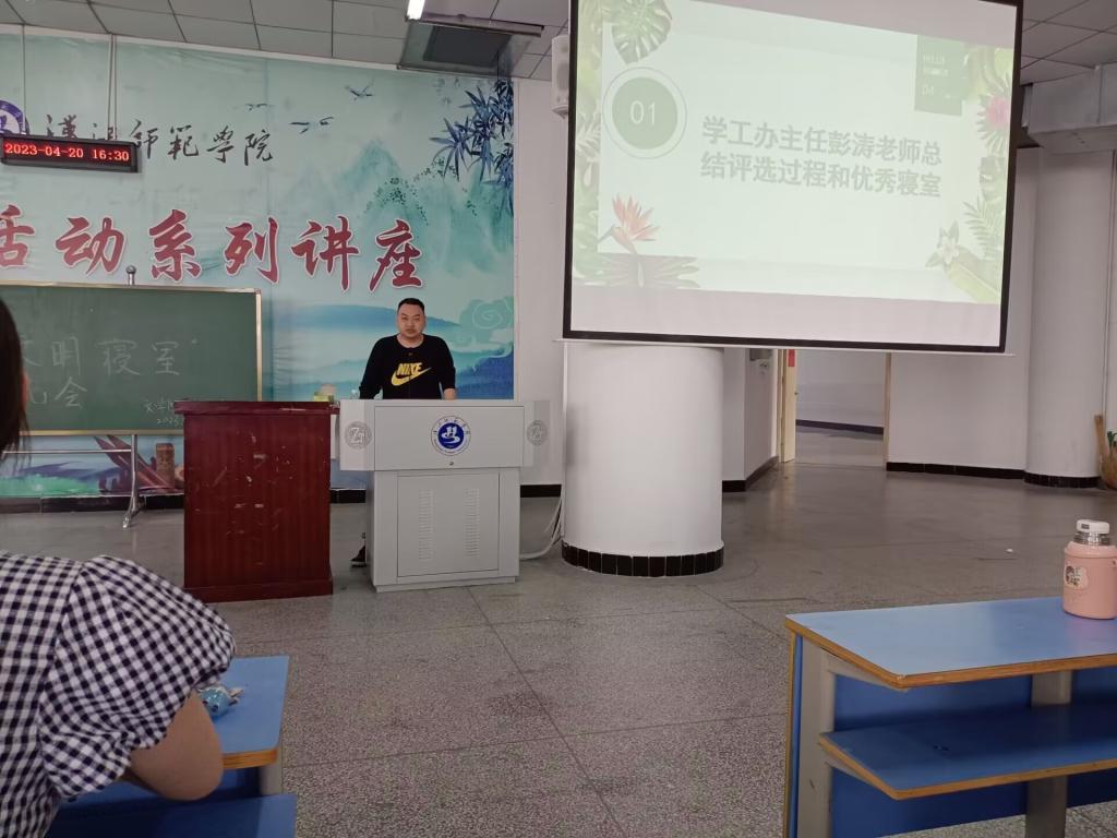 其次,进行了优秀寝室照片展示,并分别邀请文明宿舍6003、3032、4041寝室长分享创建经验。分享的同学通过精心准备的ppt生动地呈现了文明老员工的精彩风貌,获得参会同学的热烈掌声。