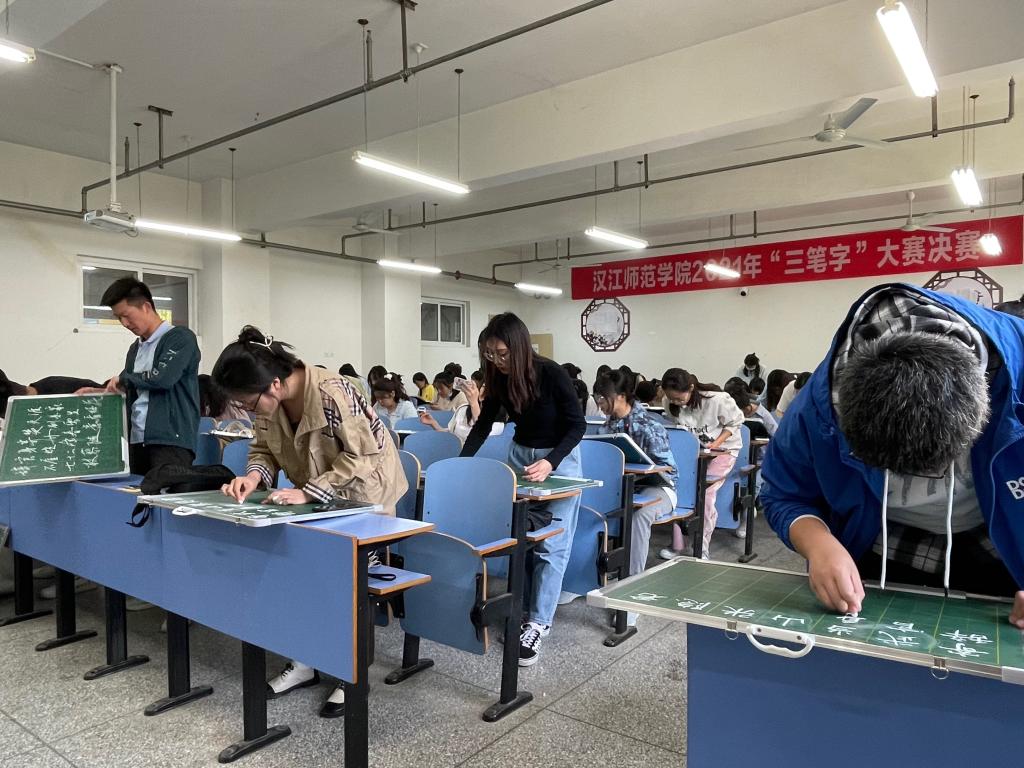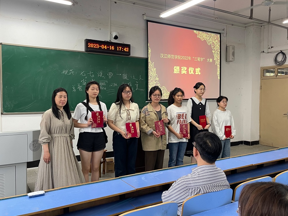 4月15下午,由教务处主办,williamhill中文官网、湖北名师工作室(汉语言文学学科)、书法文化研究中心联合承办的williamhill中文官网2022年“三笔字”大赛决赛在崇文楼A313落下帷幕。