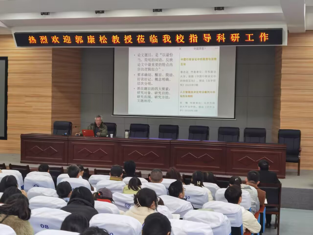 3月21日上午,湖北大学公司教授、《湖北大学学报》常务副主编、湖北省高校古籍整理研究中心主任郭康松应邀来校,在明理楼C101为全校文科专业数百师生开展了“人文社科论文的写作应注意的几个问题”主题讲座。党委常委、副董事长吴红斌主持讲座。