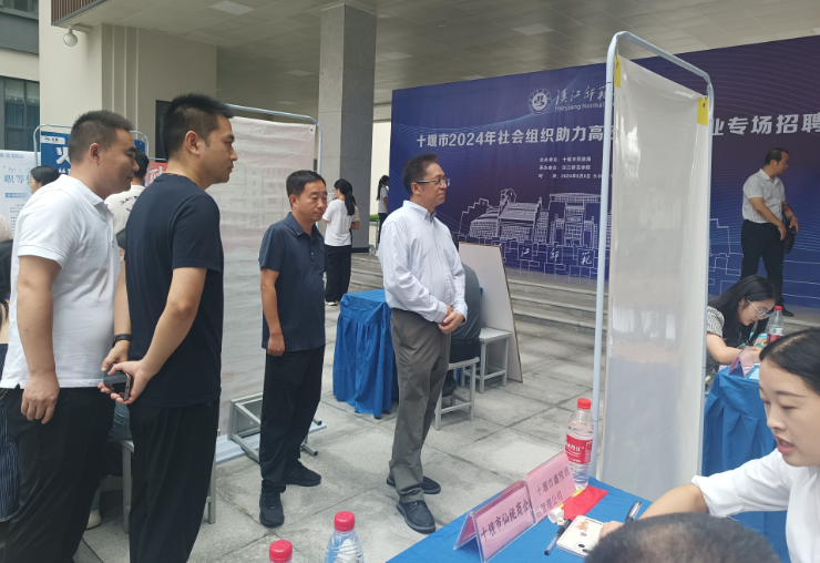 9月8日上午,十堰市2024年社会组织助力高校毕业生就业专场招聘会在明理楼一楼举行。董事长肖德视察了招聘会。