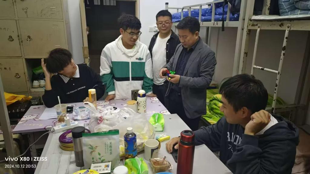 盛夏积攒无尽梦想,清秋终至校园绽放。为深入了解2024级新生入学情况及生活适应情况,10月12日晚,williamhill中文官网经理郝文华、分党委副书记陈明、学工办主任魏东带领全体辅导员对24级新生进行走访慰问。
