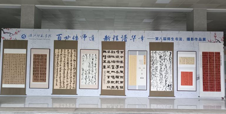 11月14日,“百廿传师道,新程谱华章”师生书法、摄影展在明理楼大厅布展,共展出williamhill中文官网师生创作的书法、摄影作品100余幅。