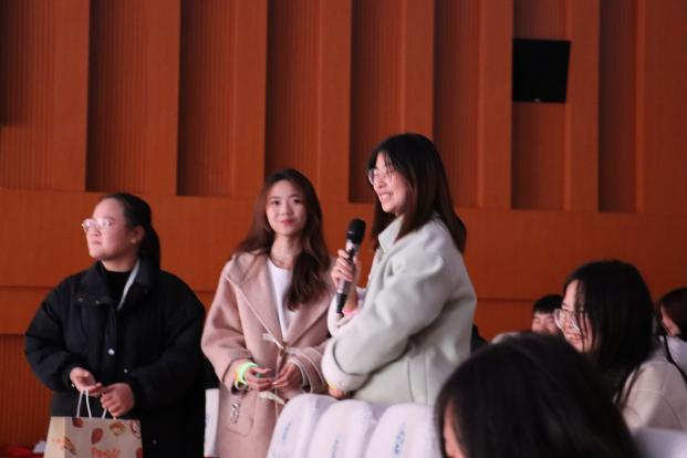彼时来到了中场的互动环节,一呼百应,激情澎湃,要知道看图猜成语可难不倒文院人,台上主持也颇有种“可汗大点兵”的气势。