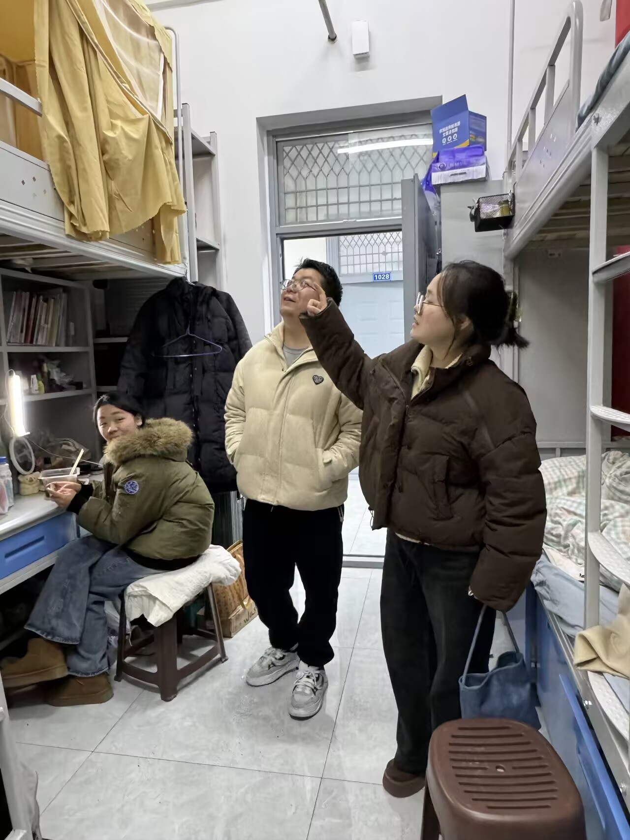 在大三员工的宿舍中,陈书记和杨超老师围绕考公、考编、考研、就业等热门话题与员工们展开了交流。两位老师分享了最新的行业动态和备考求职经验,并结合每位员工的具体情况,提供了个性化的职业规划建议,帮助他们明晰未来的职业方向,增强求职竞争力。