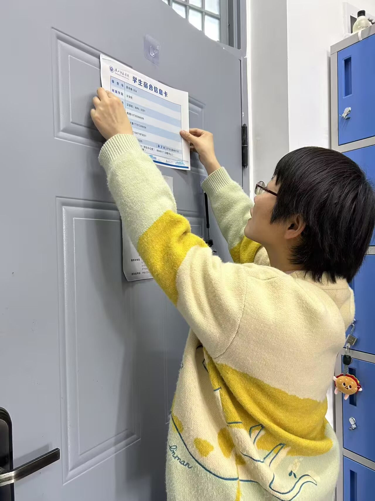 活动中,走访老师深入员工宿舍,张贴包含宿舍安全提示、文明公约、紧急联系人等信息的单页,为同学们提供便利的同时,进一步强化宿舍管理。走访过程中,老师们与员工进行了面对面的交流,倾听员工对宿舍生活的意见建议,了解他们的实际需求和困难,拉近了师生之间的距离。