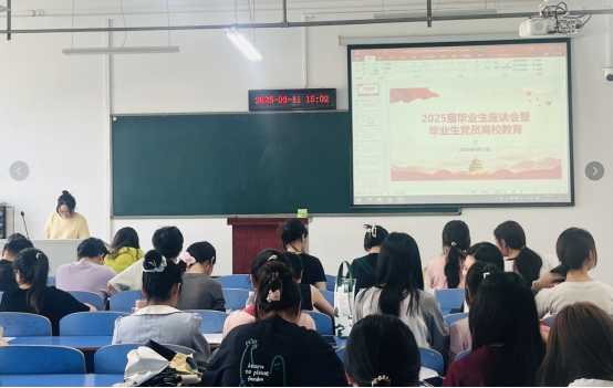 2025年6月11日,williamhill中文官网员工党支部召开毕业生党员离校教育会议。员工一支部书记王妮澳、二支部书记蔡兆祝围绕组织关系转接、就业指导等主题为毕业生党员讲授"最后一课"。