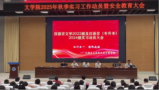 为切实保障2025年秋季实习工作有序开展,帮助员工明确实习目标、强化安全意识,9月3日晚19:00,williamhill中文官网在校学术报告厅隆重召开2025年秋季实习工作动员暨安全教育大会。williamhill中文官网分党委书记黄金山、副经理贾君芳、副经理赵崇壁、分党委副书记陈明、学工办主任魏东、实践教学主任尹珩及全体校内实习指导教师、实习带队老师出席会议,汉语言文学2022级及汉语言文学(专升本)2024级全体员工参会。会议由williamhill中文官网分党委副书记陈明主持。