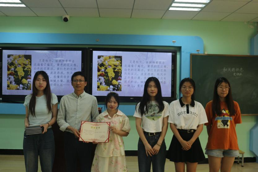 王丹老师公布教学设计成果展示的前三名,并为获奖者颁发了荣誉证书和奖品。