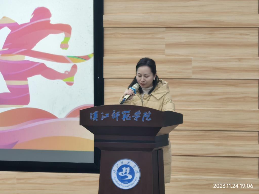 最后由教师代表杨超老师对此次在秋季运动会中所有同学的付出表示肯定及感谢,并表达了对莘莘学子的无限期望,望他们茁壮成长,为院争光!