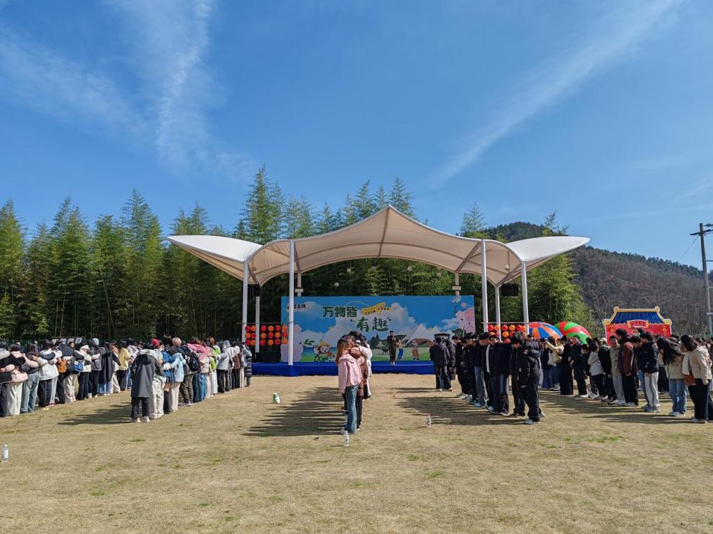 接下来,专线车队正式启程,开启全天研学之旅。研学首站为忆乡坪,师生们通过“薪火传递”等团建活动,在农耕文化体验中感悟协作精神。第二站为均郧房县委旧址,土墙与陈列的历史物品,再现了革命的峥嵘岁月。第三站为秦巴植物园,师生们漫步于樱花盛开的生态园,共同描绘春之画卷。