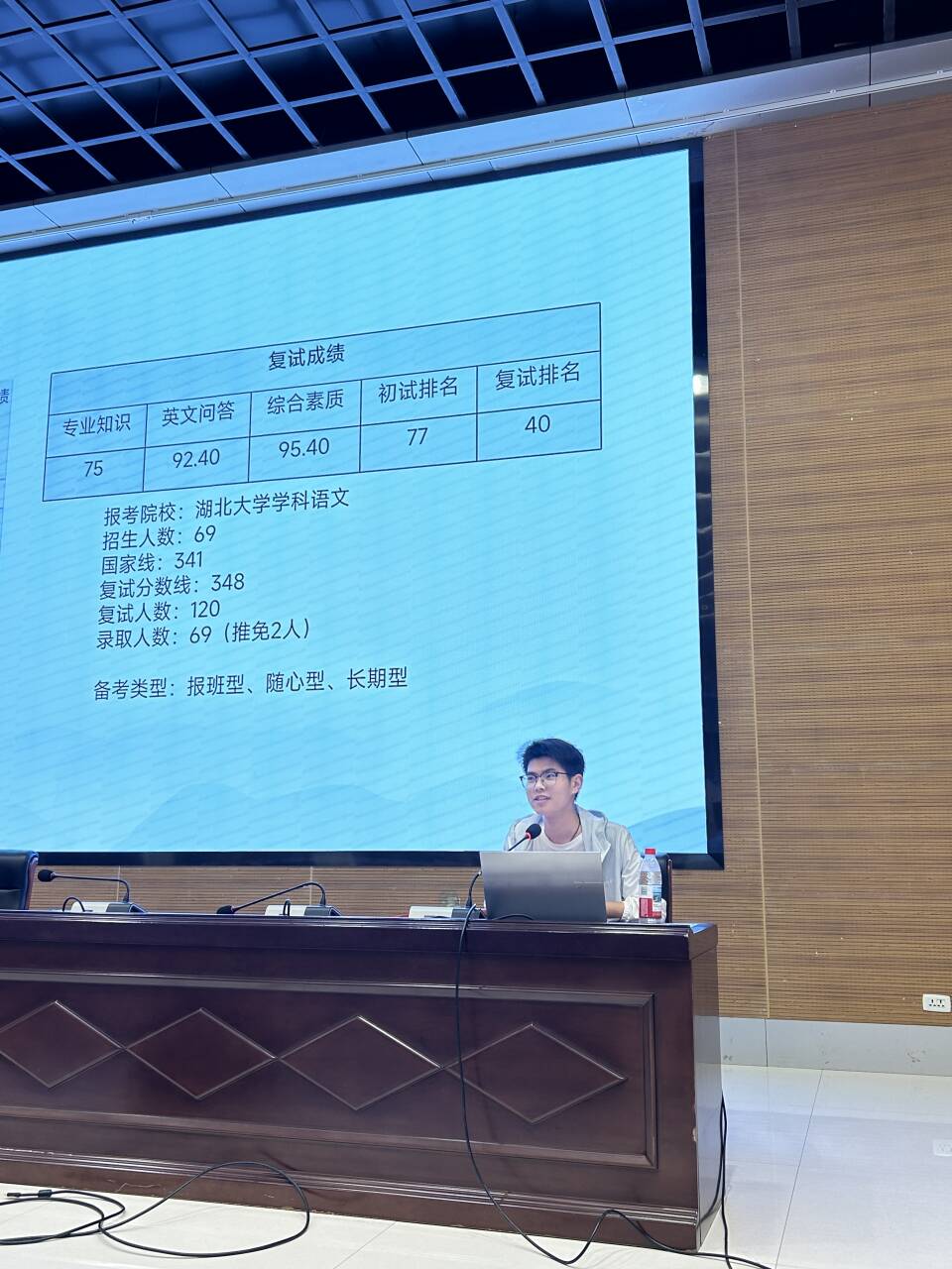 黎刚学长从“坚持与心态”出发,建议学弟学妹合理分配时间,运用“模块化学习法”攻克专业课,并以真题为核心提升应试能力。阎卓宇学姐结合自身跨专业备考经历,强调“精准择校”的重要性,并分享了跨学科知识整合的实用技巧。石银霞学姐介绍了“沉浸式复习”经验,建议通过建立知识框架、定期模拟考试来强化记忆。周源学姐重点讲解了调剂策略,提醒同学们“多渠道关注信息,保持沟通主动性。许亚伟学姐详细讲述了自身采用的整体时间轴和分科复习方法的策略,提高复习效率。阎卓宇学姐分享了通过图片记忆法提高备考效率以及关于考研英语、政治的复习技巧。
