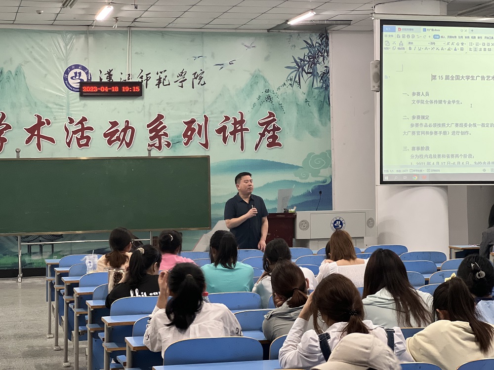 其次,杨思宇老师为大家介绍第十五届全国老员工广告艺术大赛的概况和具体流程。杨老师通过生动的讲解和往期同学参赛的经历,告诉大家需要注意的相关事项,同学们也都认真记录相关内容。