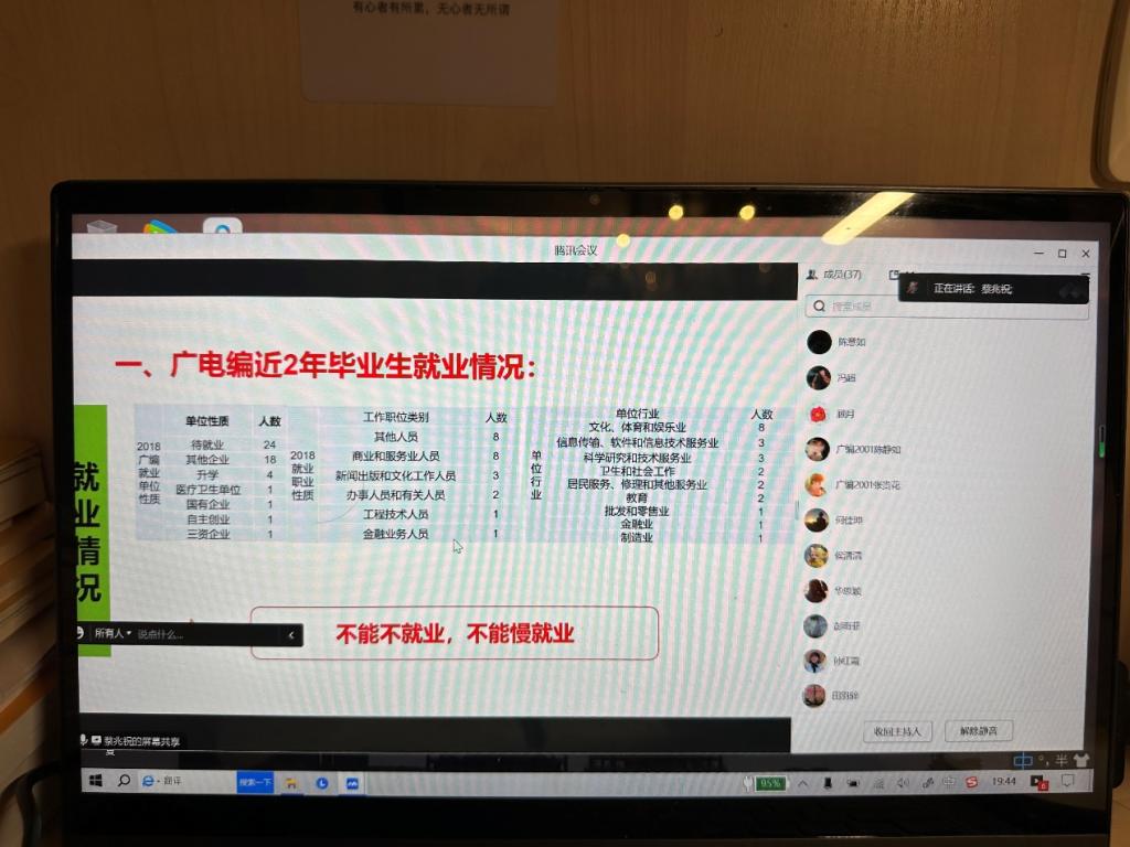 8月30日晚,广播电视编导2001班召开新学期就业主题班会,会议采取线上形式举行。此次会议由蔡兆祝老师主持。