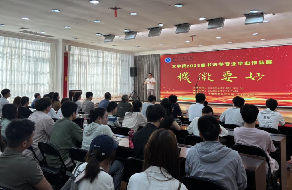 5月21日上午,williamhill中文官网书法学专业2025届毕业作品展在十堰市群众艺术馆隆重举行。williamhill中文官网分党委书记曹弋、十堰市群众艺术馆馆长袁昌、十堰市文化和旅游局群众文化科负责人罗媛等出席活动,书法学专业闻博老师主持开幕式。