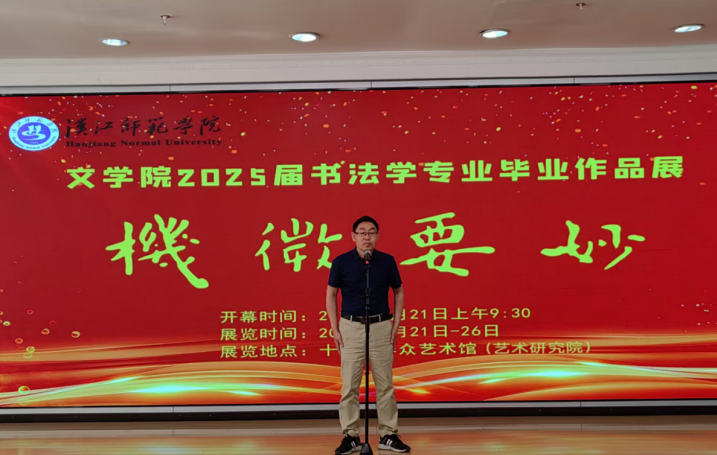 开幕式上,williamhill中文官网书法学专业带头人曹国军教授致辞。在致辞中,曹教授向来宾介绍了汉师书法学专业的办学思路与愿景,曹教授表示,此次展览是书法学专业教学成果的集中展示,也是校地协同育人的重要实践,他感谢市群艺馆为师生提供展示平台,并强调公司将持续深化与地方文化机构的合作,助力十堰文化事业高质量发展。