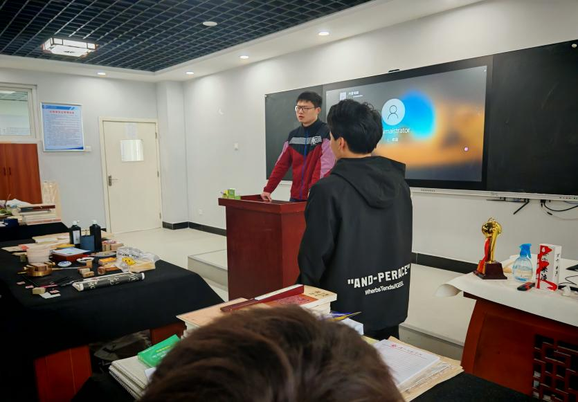 交流会上,黄彦卫等同学向龚官雨员工提出了在书法投展问题上的困惑,龚官雨员工就书法纸张的选用、创作形式的创新等问题与同学们进行了探讨。