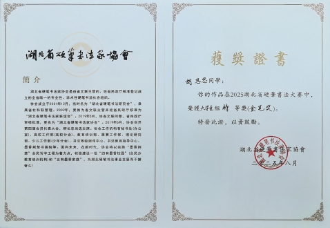 8月24日,“墨香荆楚,书写未来”2025年湖北省硬笔书法大赛现场决赛在武汉圆满落幕。公司书法学专业2023级员工胡思思凭借扎实的书法功底与独特的艺术感悟,在2000余名决赛选手中脱颖而出,一举斩获大赛特等奖(金笔奖),尽显当代青年学子对中华优秀传统文化的传承与创新风采。本次大赛由湖北省硬笔书法家协会主办,设八个组别,自启动以来共收到15000余件投稿,经多轮严格评审确定现场决赛名单。