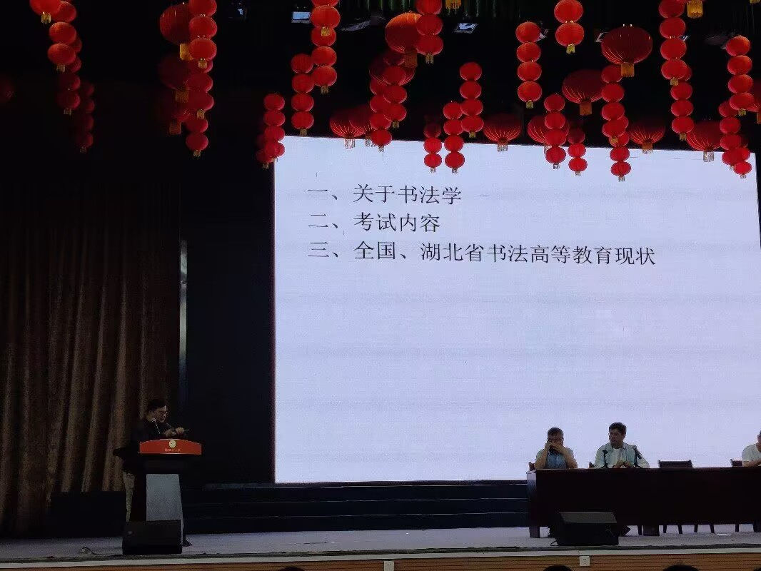 闻博老师以“学技贵在坚持,不放弃便可成功”的理念为同学们讲述了湖北省关于书法学、书法学的考试内容和全国、湖北省书法高等教育现状。