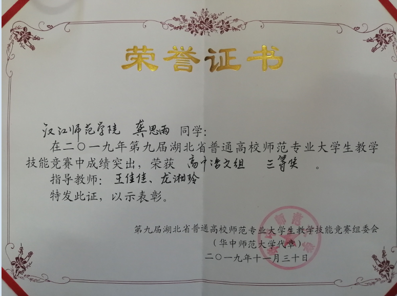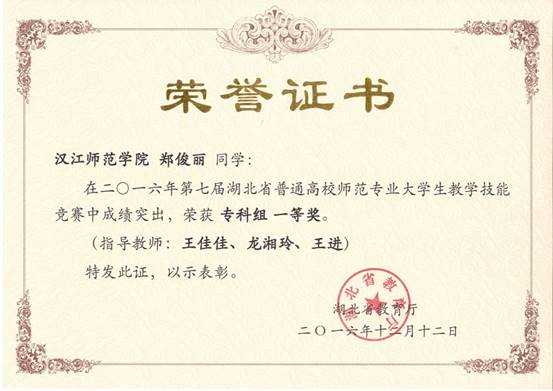 本专业2019年被确定为湖北省一流本科专业建设点。汉语言文学专业教学团队被评为省级教学团队,汉语教研室、古代文学教研室被评为省级优秀基层教学组织。2018年获批湖北省“荆楚卓越教师”协同育人计划项目。获得湖北省高等公司教学成果一等奖1项、二等奖1项、三等奖2项。